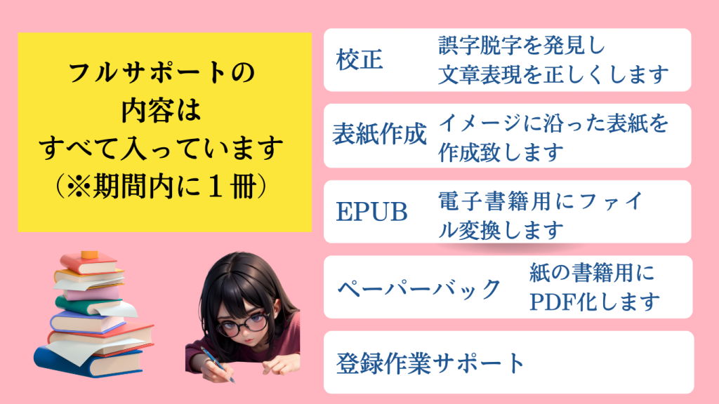 出版フルサポートコースの内容はすべて入っています。